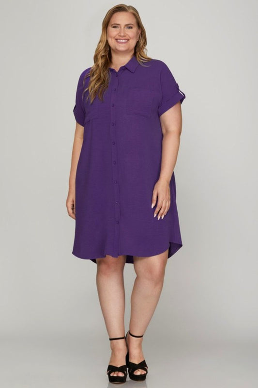 Button Down Short Sleeve Woven Shirt Dress Plus Size