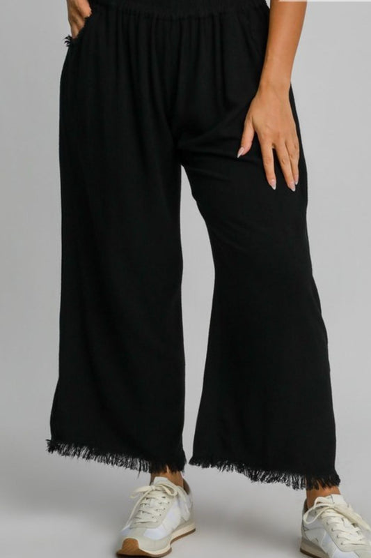 Smocked Waist Boho Wide Leg Pants with Pockets