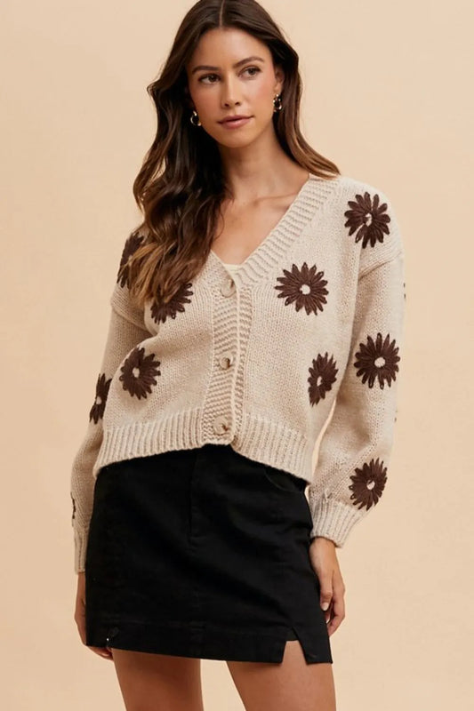 Plaid Sweater Cardigan with Button Front and Matching Mini Skirt Set