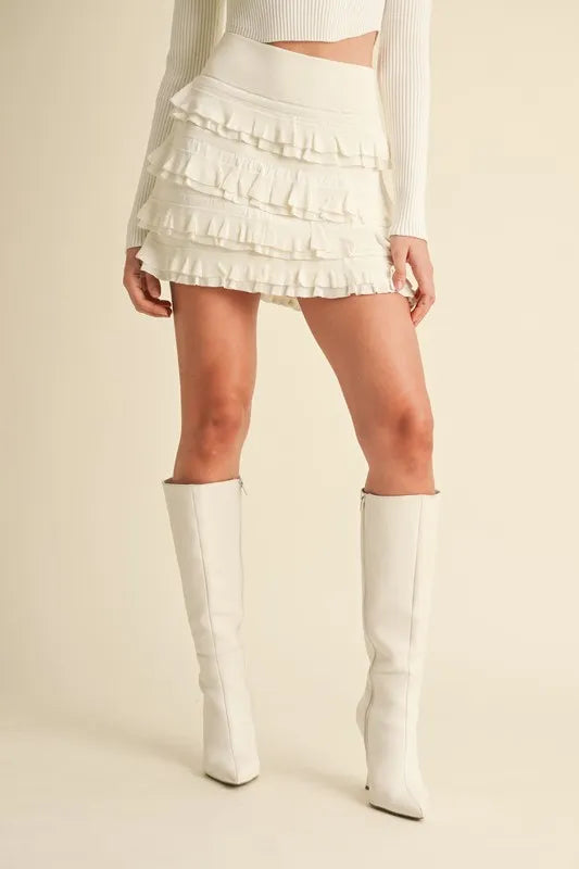 3 Pieces Sweater Set with Crop Cami, Mini Skirt, Cardigan