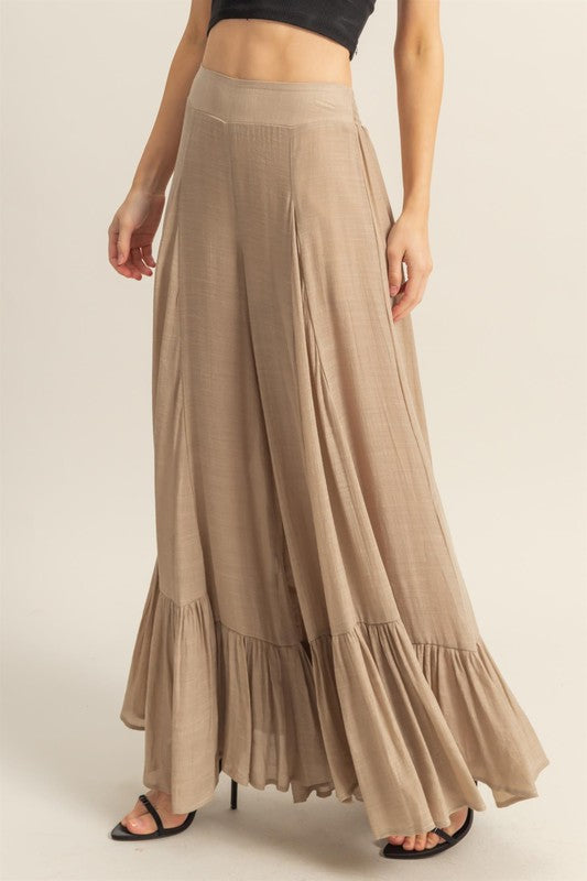 High-Waist Ruffle Flared Wide Leg Pants